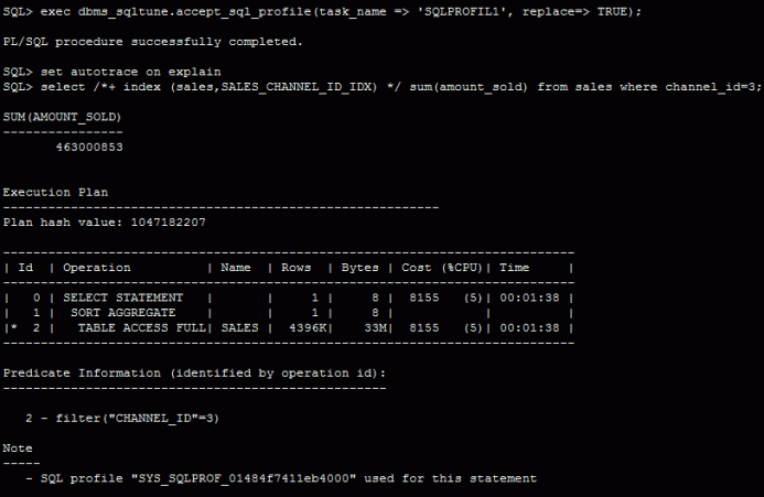 As you see, the SQL Profile makes it possible for the optimizer to ignore the hint!