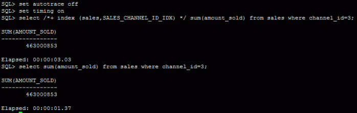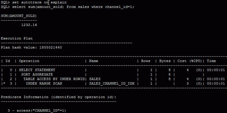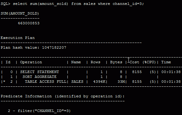 I have also informed the optimizer of that skew by creating histograms. Also, there is an index on the channel_id column, that is used by the following statement: