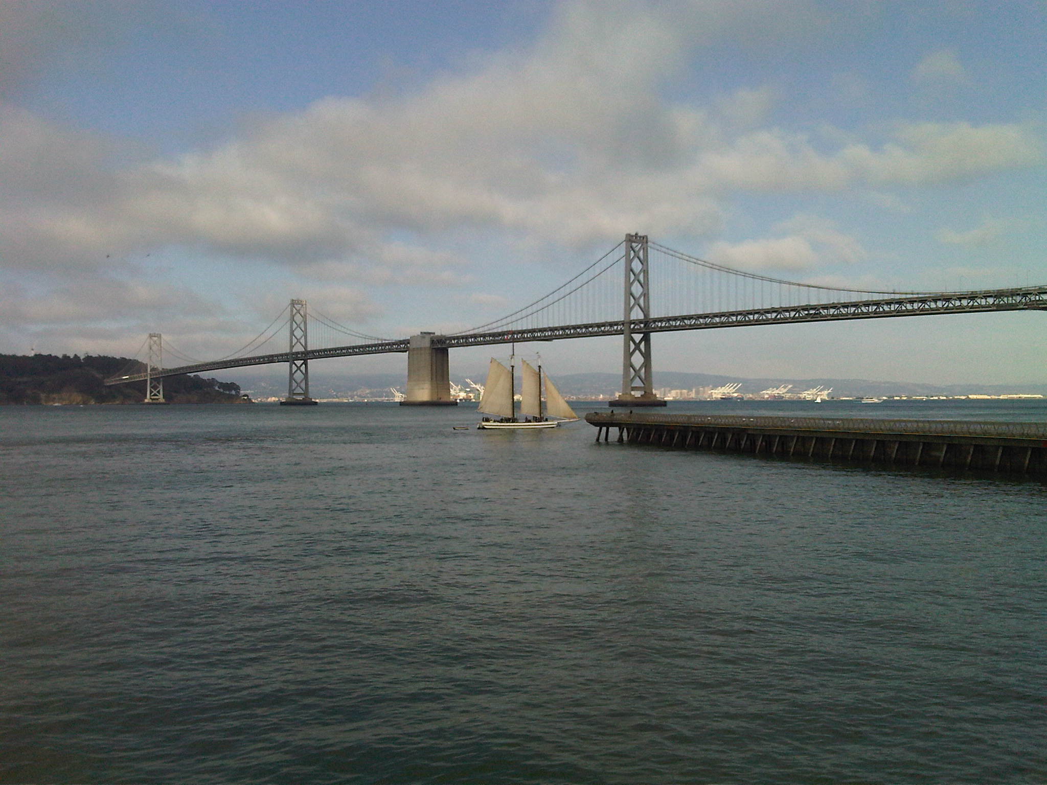 I thought this one below is the famous Golden Gate, but it is actually the Bay Bridge, as Frank just told me – although the picture was taken from the ‚Golden Gate Ferry Terminal‘ 🙂