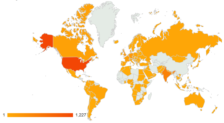 I limited the list above to the top 10 Countries, but there have been many more. Thank you, world! I hope to color the gray spots also over time 🙂