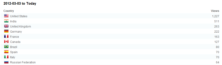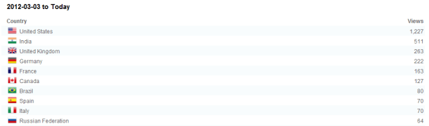 I just discovered the new Statistics Page in WordPress that breaks down the hits on the Countries. That’s really amazing! Look at my global reach of the last 7 days (*Hubris on*):