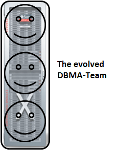 Either the EDBA team evolves over time into a DBMA team or you start straight with this approach, typically by assigning some Admins from the Storage/System/Network groups to the DBMA team and let all team members cross-train in the three areas: