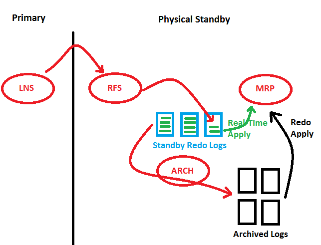 Delivering my first couple of LVCs, I felt quite uncomfortable with that new format. Accordingly, my performance was not as good as usual. Meanwhile, I consider the LVC format as totally adequate for my courses and that attitude enables me to deliver them with the same performance as my classroom courses. Actually, they are even better to some degree: I always struggle producing clean sketches with readable handwriting on the whiteboard. Now look at this MS paint sketch from one of my Data Guard LVCs:
