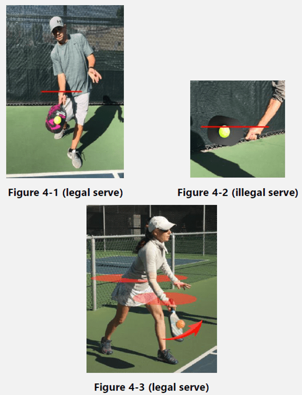 Außerdem muss der Ball unterhalb der Taille des Aufschlägers getroffen werden, wie in 4-3 zu sehen.