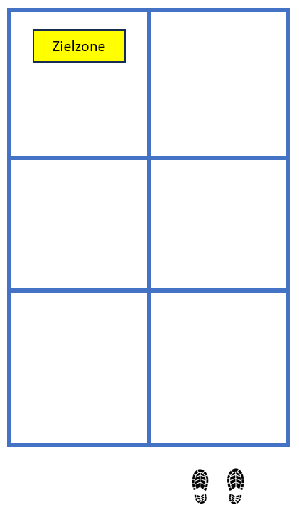 Ins hintere Drittel, weil die Rückschläger sonst zu leicht einen starken Return spielen und die Aufschläger hinten halten können. Mit der gelben Zielzone ist es unwahrscheinlich, dass der Aufschlag aus geht.