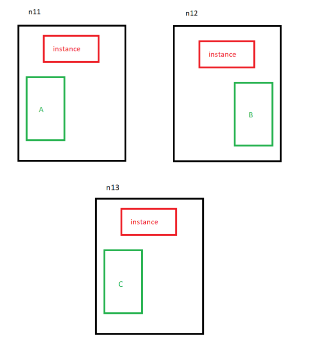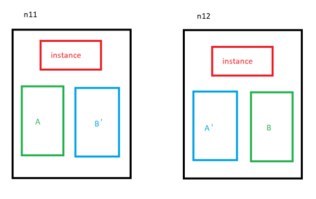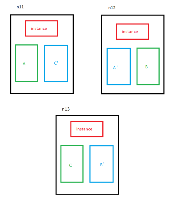 A and B are master segments while A‘ and B‘ are mirrored segments. If I could add a node to this volume keeping the existing segments, it would look like this: