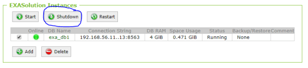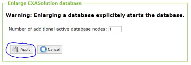 My one node cluster did use redundancy 1, now I want to change that to redundancy 2. That step is of course not required when you started with a multi-node cluster using redundancy 2 already. See here for more details about redundancy in Exasol.
