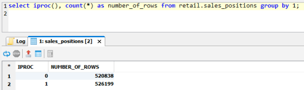 Technically, this is a 3+0 cluster now – but the third node doesn’t contain any data yet. If we look at the same table as before, we see that no rows are on the new node: