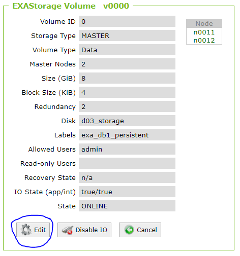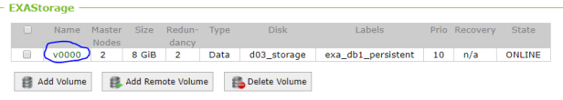 After going to the Storage branch in EXAoperation, click on the data volume: