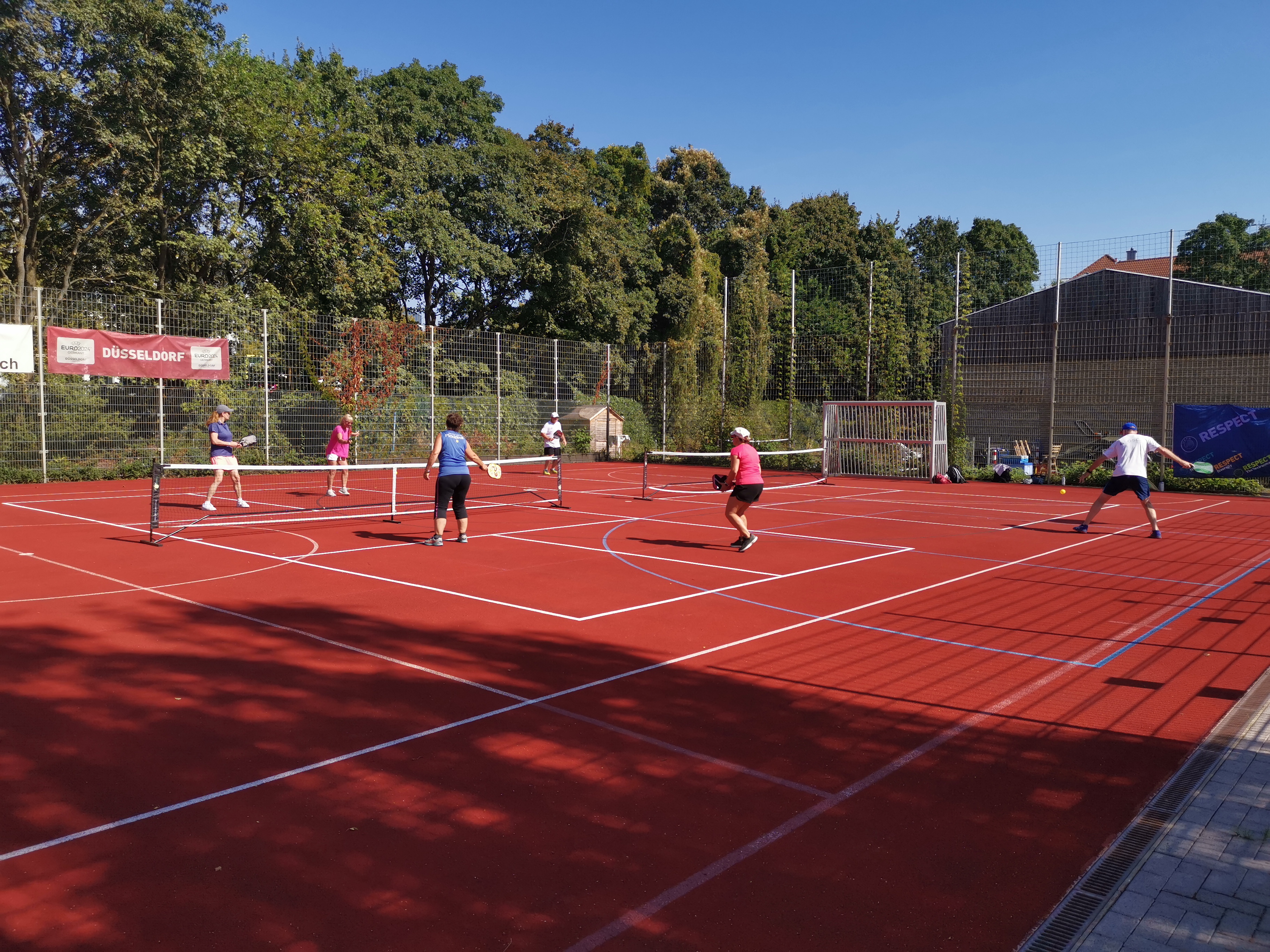 Das ist momentan so ziemlich die einzige Hürde beim Einstieg: Pickleball ist noch nicht so bekannt in Deutschland – das ändert sich aber gerade rasant! Die besten Chancen hast du als Einwohner Nordrhein-Westfalens, denn da gibt es mittlerweile in fast jeder größeren Stadt Vereine, die Pickleball anbieten. In der Landeshauptstadt natürlich sowieso. Aber auch in anderen Bundesländern gibt es Pickleball-Vereine. Hier ist eine Karte. Diese Facebook-Gruppe ist auch ein guter Ort, um Pickleball-Spielmöglichkeiten zu finden. Auf die Idee mit der Suchmaschine („Pickleball <Meine Stadt>“) bist du schon selbst gekommen 😉 Aus eigener Erfahrung weiß ich zudem, dass die Vereine nicht unbedingt zeitnah etwas auf ihren Webseiten veröffentlichen, auch wenn sie bereits eine Pickleball-Gruppe am Start haben. Es lohnt sich also, einfach mal den lokalen Verein deiner Wahl zu kontaktieren und nachzufragen!