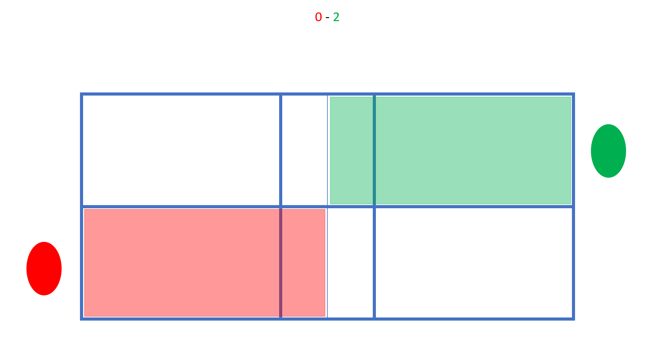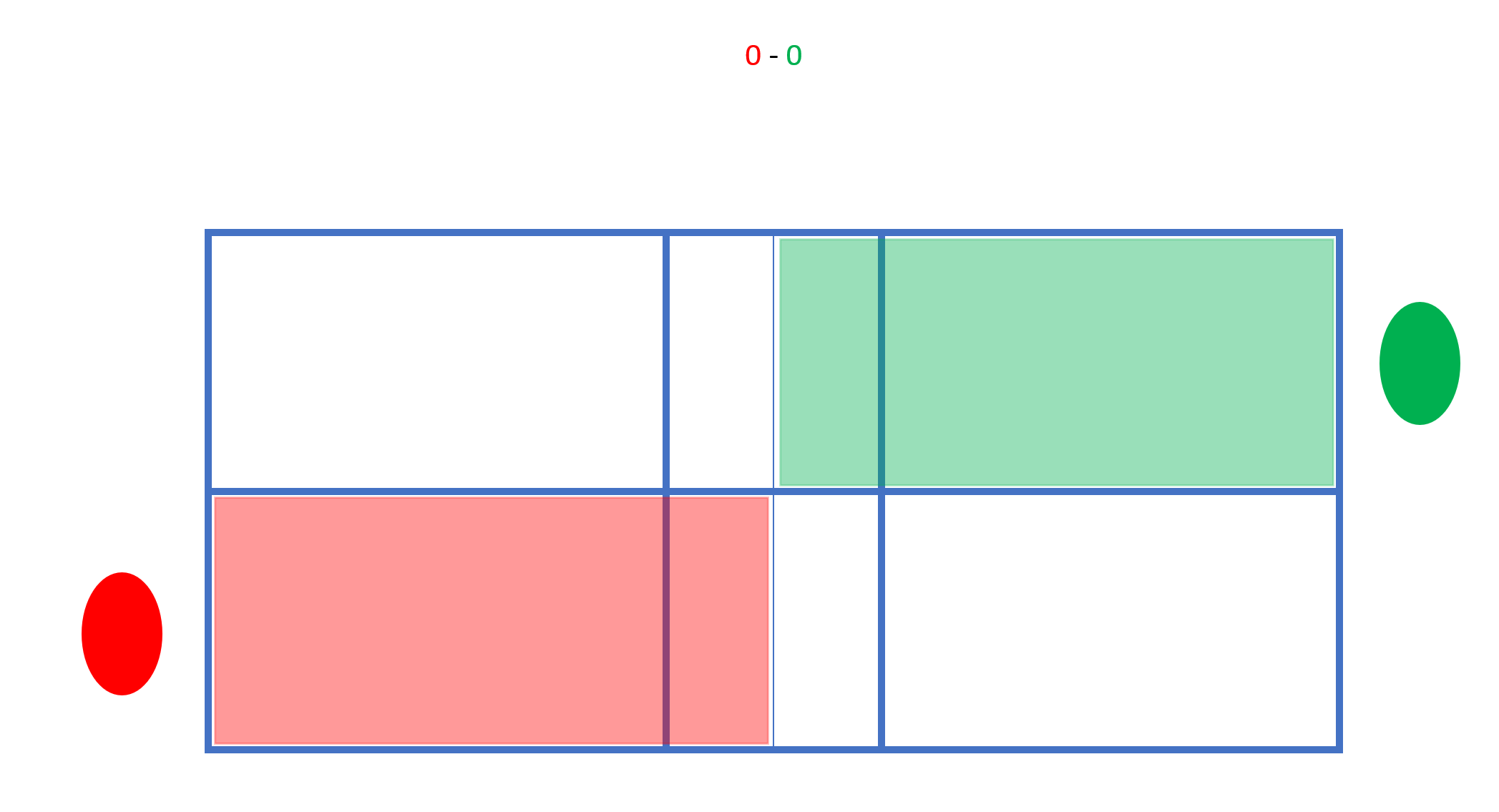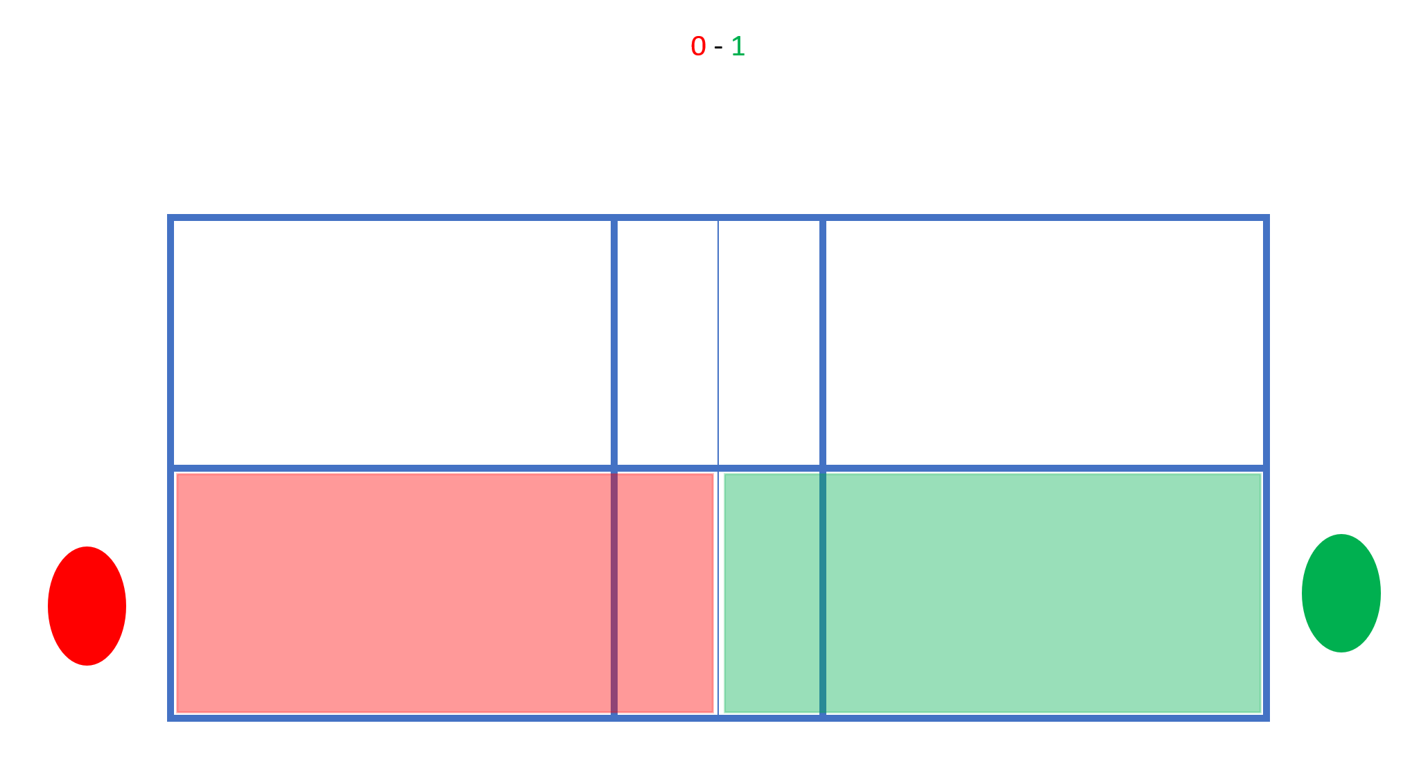 Macht Rot nun einen Punkt, wechselt er mit dem Aufschlag nach links, während Grün gemäß seines Scores rechts stehen bleibt: